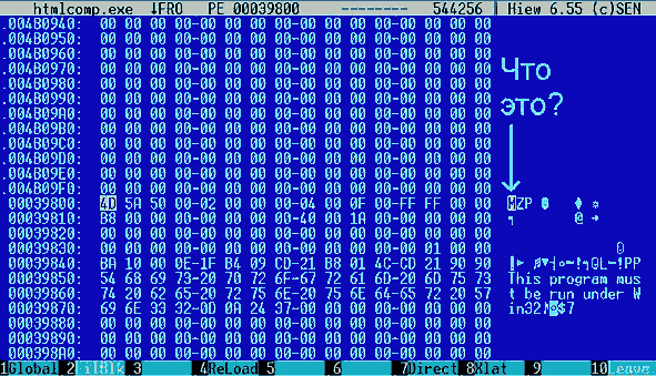 Что ж, я полез в Hiew 6.11 разбираться. Когда я указал ему пойти на адрес