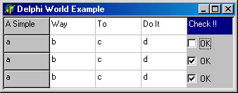 StringGrid1.Cells[0, 0] := 'A Simple';